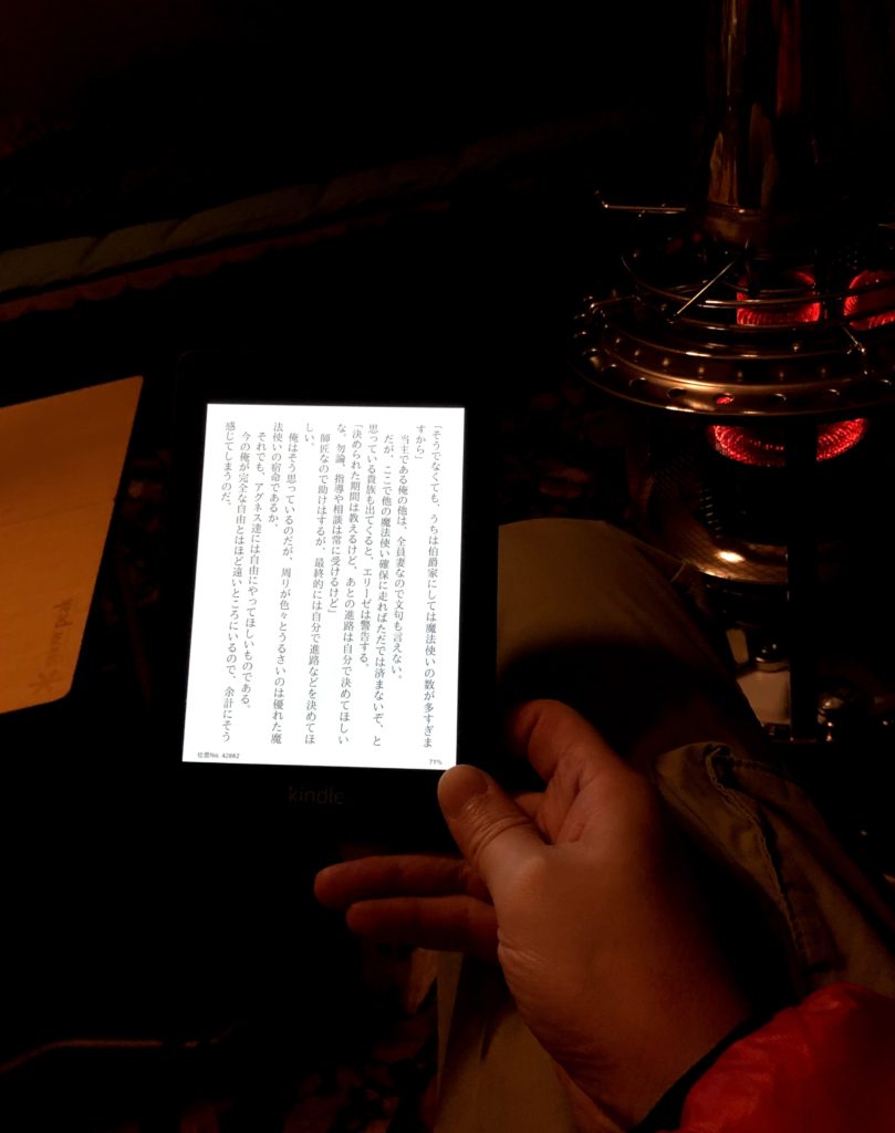 で、独り読書にハマりたい願望も合わさって、ソロキャンデビューとなったわけです。要は、焚き火に飽きたら、テントでお酒飲みながら、ラノベなんです。テンソロのソロキャンスタイルは^^;